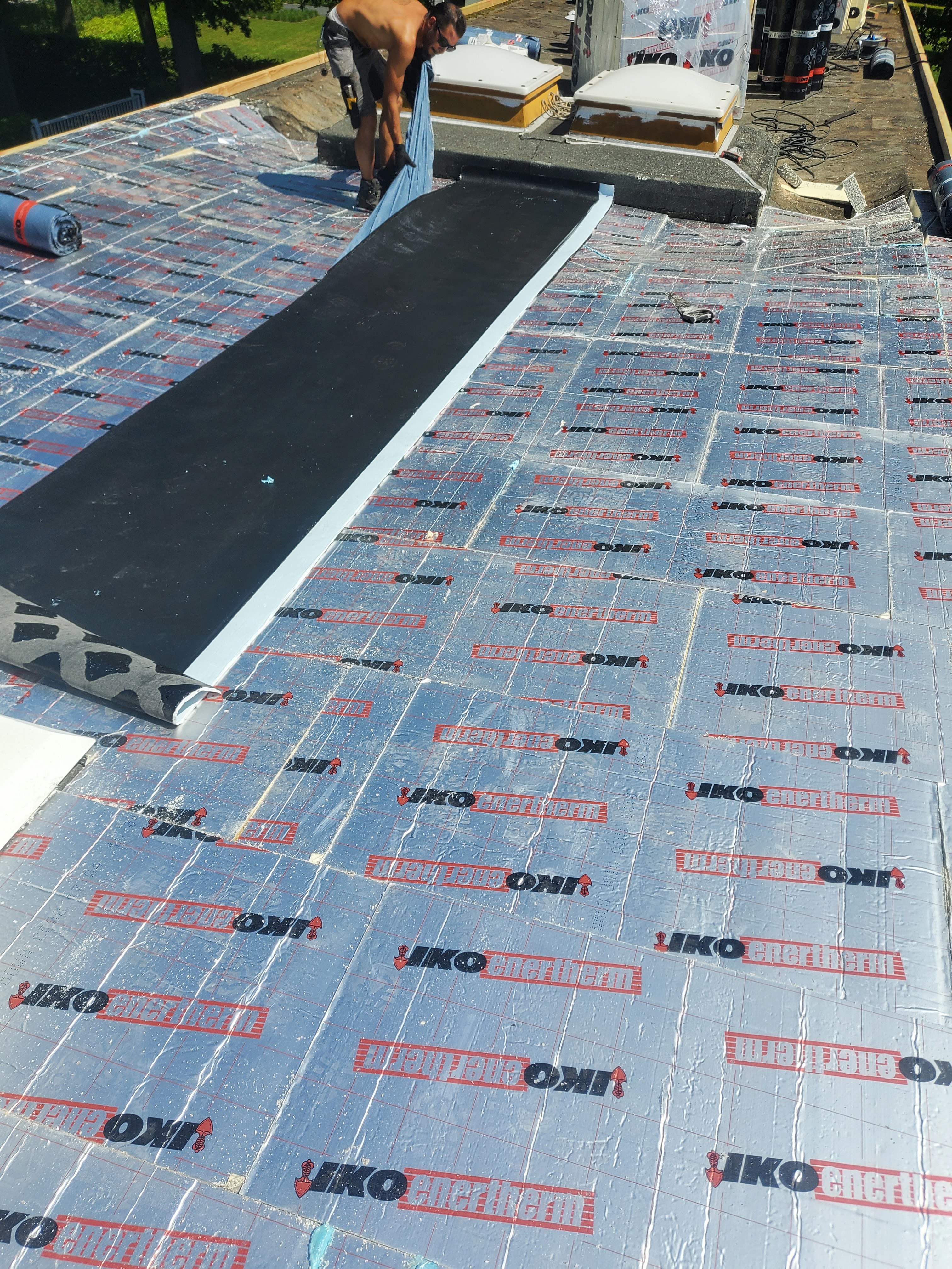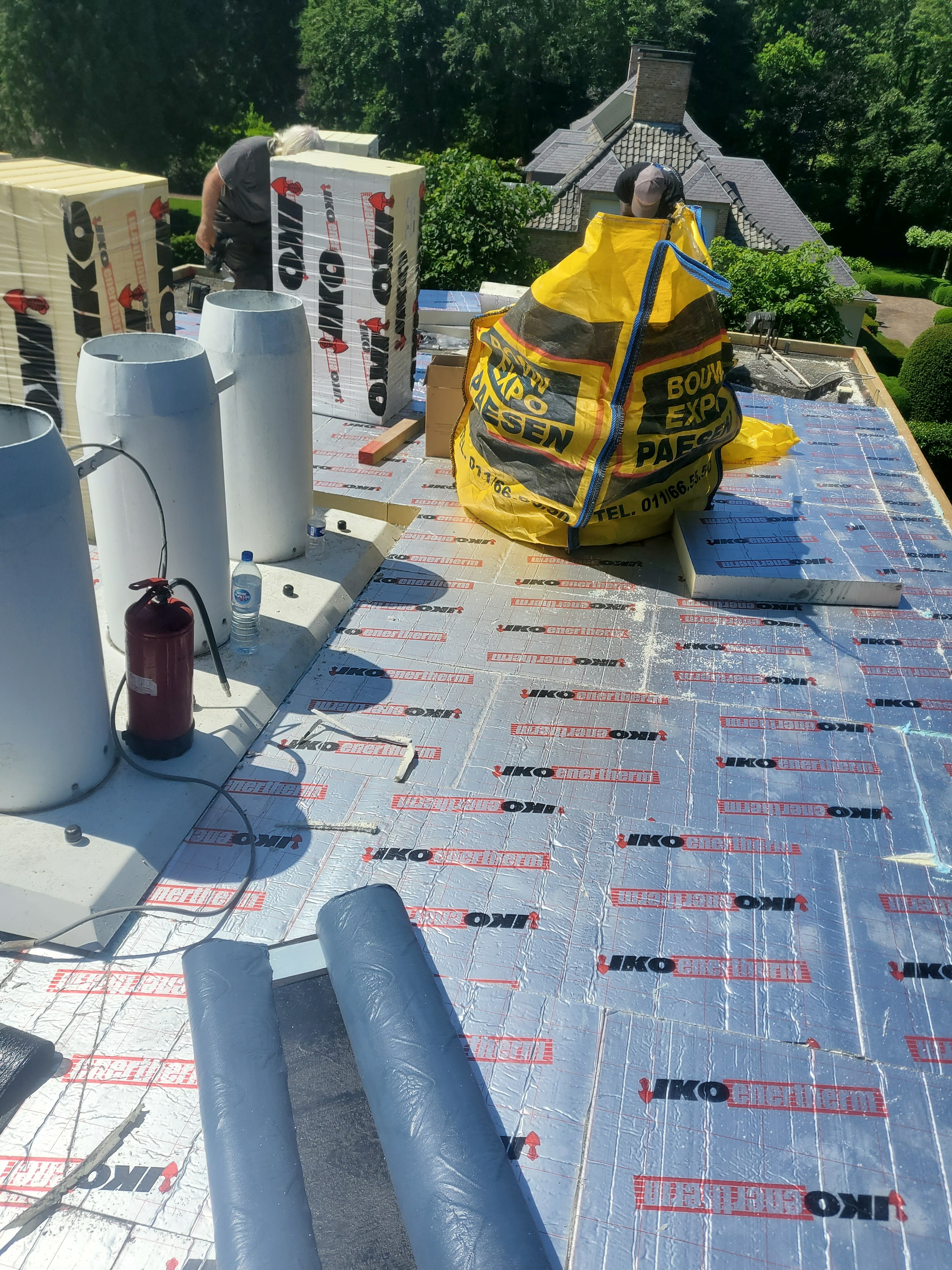 • Plaatsen van een reflecterende witte roofing in meerdere lagen